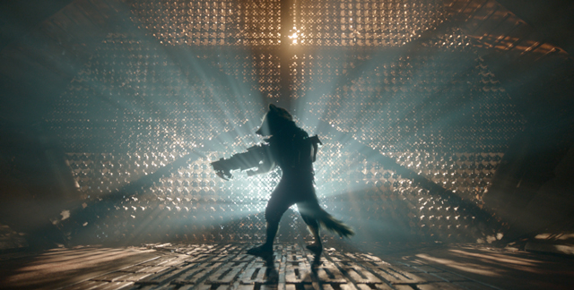 这里是干脆面Rocket在威胁要给Yondu的船炸开个菊花。