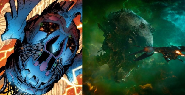 废柴小分队跟买家交易,来到了诡异的人头型星球Knowhere。这地方的名字Knowhere是谐音+双关,know+nowhere的组合。nowhere指的是遥远偏僻,谁都不知道在哪里的地方,类似《庄子》的“无何有之乡”。而Know首先跟no同音,而且又切合“人头”的外形。