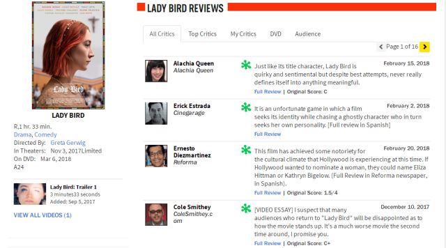 有影评人给了《伯德小姐》差评