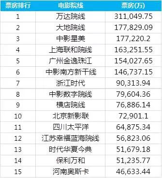 【5】院线:2014年前三季度TOP15全国院线票房累计约177.82亿元,票房占比80.9%。万达院线占比14.16%;大地院线占比8.09%;中影星美院线8.06%。