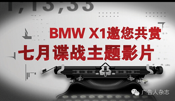 7月,既是各大强档大片的抢滩期,同时也是品牌夏季营销的第一战。电影频道结合新BMW X1的slogan和目标消费群,以“用行动做你所想,ACTION”为电视合作主题,充满节奏感和生命力地打响新BMW X1上市第一枪。“用行动做你所想,ACTION”不仅是新BMW X1的宣传语,更是都市年轻人的行动力量和跳跃的生命力。