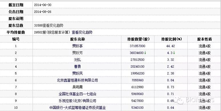 上图是乐视最近披露的股东信息,和乐视上市初期已经有了很大变化。我们再来梳理下:
