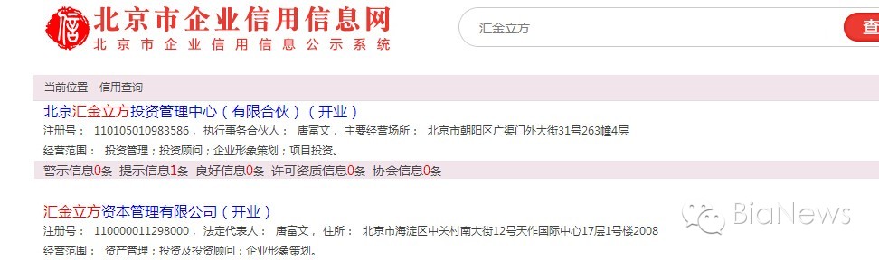 公开资料显示,汇金立方成立于2008年8月29日,法定代表人唐富文,注册资本5000万元,其股东只有一个,即北京汇金立方投资管理中心(有限合伙)。