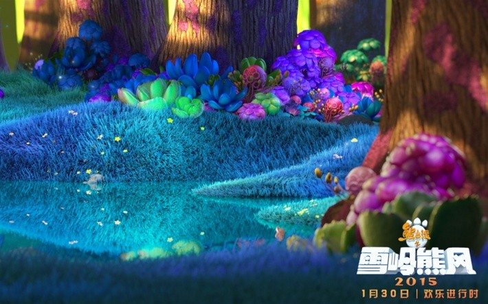 相对2D动画,3D会让观众感觉更加细腻真实。《熊出没2》主打的是全龄化路线的3D动画片,电影中采用Maya 3D制作技术,在非常梦幻的多彩鲸鱼画面和一些蝴蝶纷飞的场景中确实有“大手小手一起抓”的逼真效果。其实这类绚烂景象去年在主打“童话世界”的《喜羊羊6》中也有不少相似设计,但是2D制式一定程度上限制了梦幻仙境的视觉体验,使得影片不够好看。
