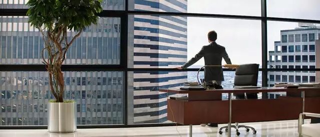 克里斯汀鲜亮雪白的大理石办公室设计让人眼前一亮:落地窗、经典复古法式桌、桌上的Koch & Lowy品牌复古铜灯、像绳子般弯曲的盆栽。会客厅是在温哥华的全球最具创意建筑事务所福斯特(Foster + Partners)所在建筑取景。