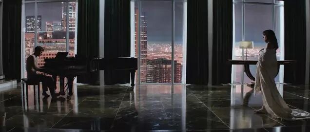 克里斯汀·格雷(Christian Grey)住的顶层公寓可能是摄影棚搭景,但公寓所在的Escala大厦却是西雅图真实存在的建筑。美国房地产网站Zillow数据显示,2013年,Escala一套三卧室公寓售价620万美元。该物业的窗口居高临下,确有君临天下的气势。