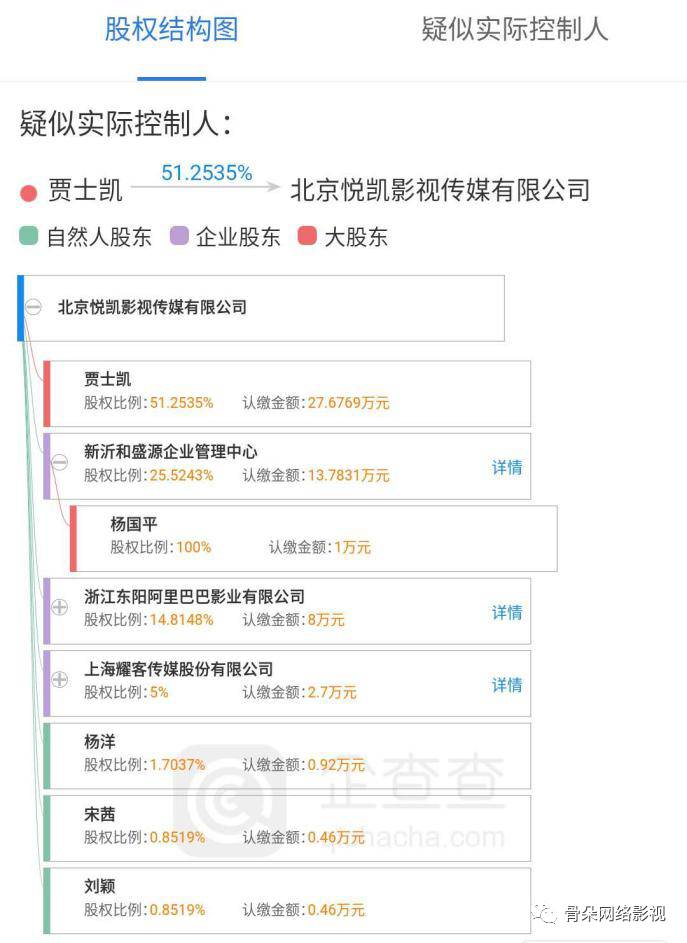 而悦凯影视,不过于2015年7月成立,由杨洋经纪人贾士凯控股,杨洋父亲杨国平和艺人杨洋、宋茜、颖儿(刘颖)持股,紧接着拉来大佬阿里入股15%。