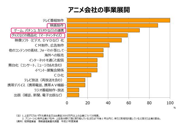 根据信息通信基本调查的数据、以及游戏与动画公司今后事业展开方向的问卷调查结果可见,动画和游戏公司的选择方向也大不相同,尽管无法进行直接的比较,但也能够从两者今后事业发展的构想中窥见一斑。