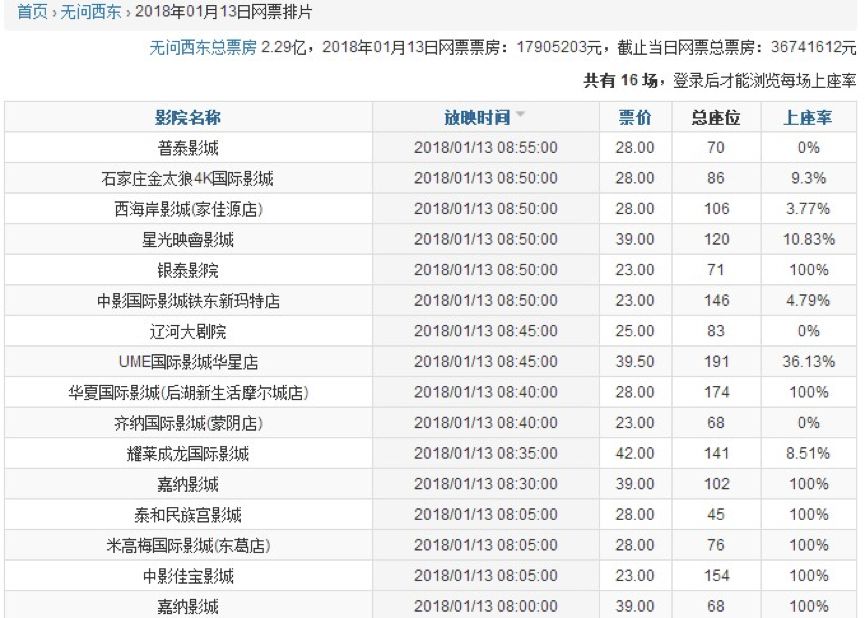 此前,《前任3》的意外逆袭,被网友揪出了上座率异常的截图,而《无问西东》尽管上映不久,但也出现了大量上座率异常的现象。