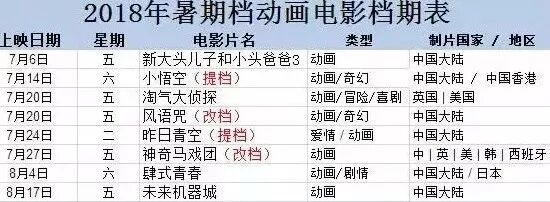 目前已经有18部动画电影登陆院线市场,中国参与出品的动画电影13部,暑期档(7月至8月)有8部动画电影定档,中国参与出品的动画电影13部。已定档的影片规模展现了中国电影市场一些细微变化,电影院的消费正向低龄化发展,既有亲子向的《神秘世界历险记4》《小悟空》,又有成人向的《风语咒》《昨日青空》。