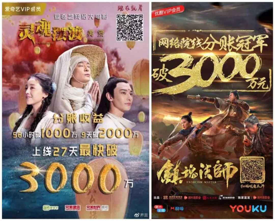 图5:2018年最先破3000万分账的网络电影《灵魂摆渡·黄泉》与《镇魂法师》