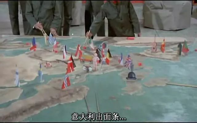 影片一开始,我人民解放军大军压境,法国总统装模作样地发表了演说,然后弃城而逃,跑去美国组成了流亡政府。
