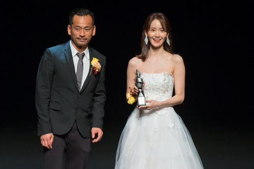 影展大使金容华(Kim Yong-Hwa)、明星大使尼古拉斯•基治(Nicolas Cage)、林允儿(Lim Yoon A)于开幕典礼上获大会颁赠奖座。
