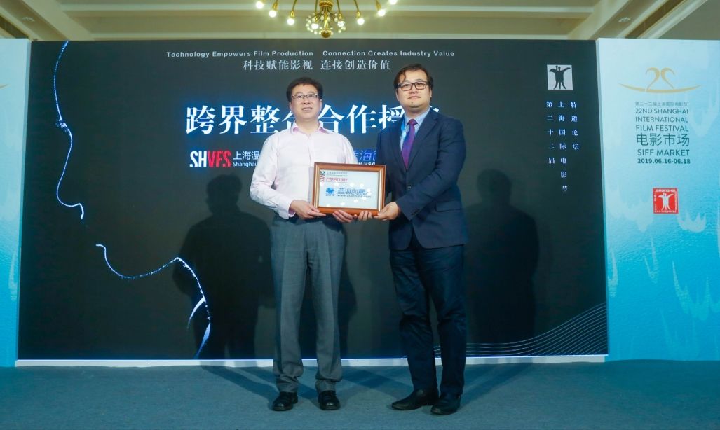 上海温哥华电影学院副院长陈晓达代表上海温哥华电影学院,为蓝海创意云授牌,双方表示将从产学研结合的角度出发,在资源整合、系统创作、项目孵化等多方面达成深入合作。
