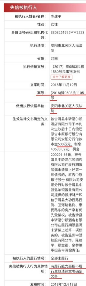 近日,有网友爆料称,乐华旗下偶像艺人黄明昊的妈妈陈建平欠债三千多万,有偿还能力却拒不偿还,被列入失信被执行人名单。在网友贴出在中国执行信息公开网的查询过程中,可以看到黄明昊妈妈陈建平有3条相关联执行信息。