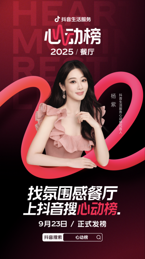 9月23日,心动榜餐厅的新一期榜单将会正式发布。揭榜当天,还将举办“心动成团夜”晚会,超多明星嘉宾、心动榜上榜商家、抖音热门达人将全员心动集结,带领大家感受东方美学、山野自然、松弛时髦、未来先锋四种极致氛围。