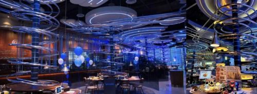 还有些餐厅则在装修上更突出科技元素,设计反重力轨道送餐系统、机械臂、大量采用金属面板和高饱和霓虹灯,就像是在现实中打造的游戏世界。在这样的餐厅吃饭、打卡,想必也是一次特殊的体验。