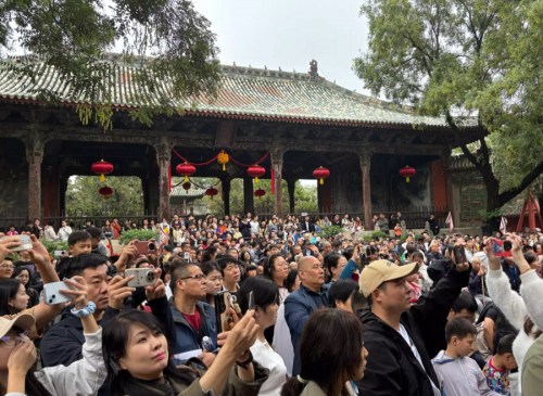 在关帝庙前广场,双方还联合开展“秦腔安万关公戏专场”快闪活动,悠扬的唱腔与精彩的武打场面,吸引了大批游客驻足观看,成为运城国庆期间的一道独特文化风景线。