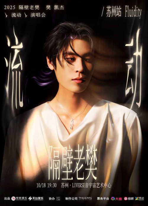 隔壁老樊_樊凯杰"流动"演唱会苏州站门票预售已开启。10月18日19:30,以"水韵古城"闻名天下的苏州将迎来一场音乐盛宴——苏州市LIVERSE音宇宙(音宇宙艺术中心)将化身为沉浸式音乐殿堂。当樊凯杰极具感染力的音乐遇上苏州独特的江南水乡风情,必将擦出令人惊艳的艺术火花。令人期待满满!回顾9月20日北京站的精彩现场,樊凯杰用20首跨越时光的经典与新作,为观众献上了一场关于音乐与时间的深情对话。从《我曾》的低吟浅唱到《都会变好的》的治愈之力,《多想在平庸的生活拥抱你》的温柔诉说到《我要带你去流浪》的全场大合唱......他以极具故事感的嗓音和匠心独运的舞美设计,打造出一个充满呼吸感的沉浸式音乐空间,让每一位观众都沉浸在音乐最本真的感动之中。