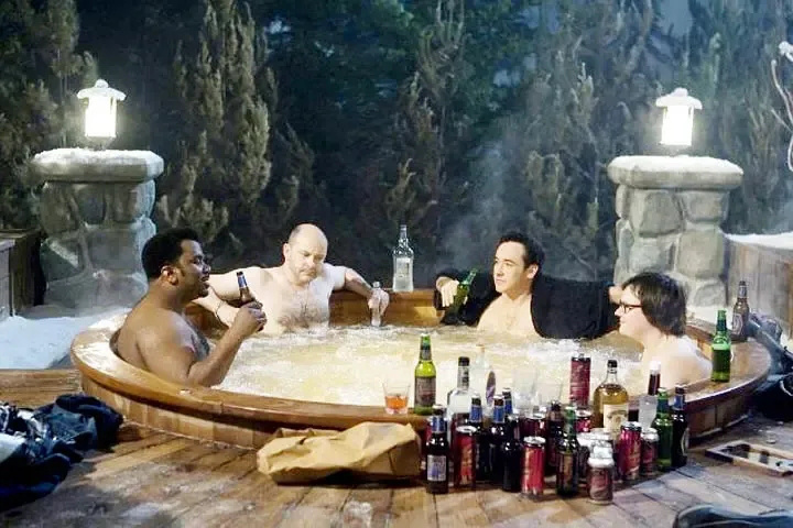 美国电影《热浴盆时光机》更是通过想象力将浴盆的功能开发到了极致。一个看似普通的热浴盆,竟成为了穿越时空的媒介。四个失意中年人通过它重返1980年代,试图修正人生的遗憾。这里的澡堂成了反思过去、重塑现在的神奇空间。