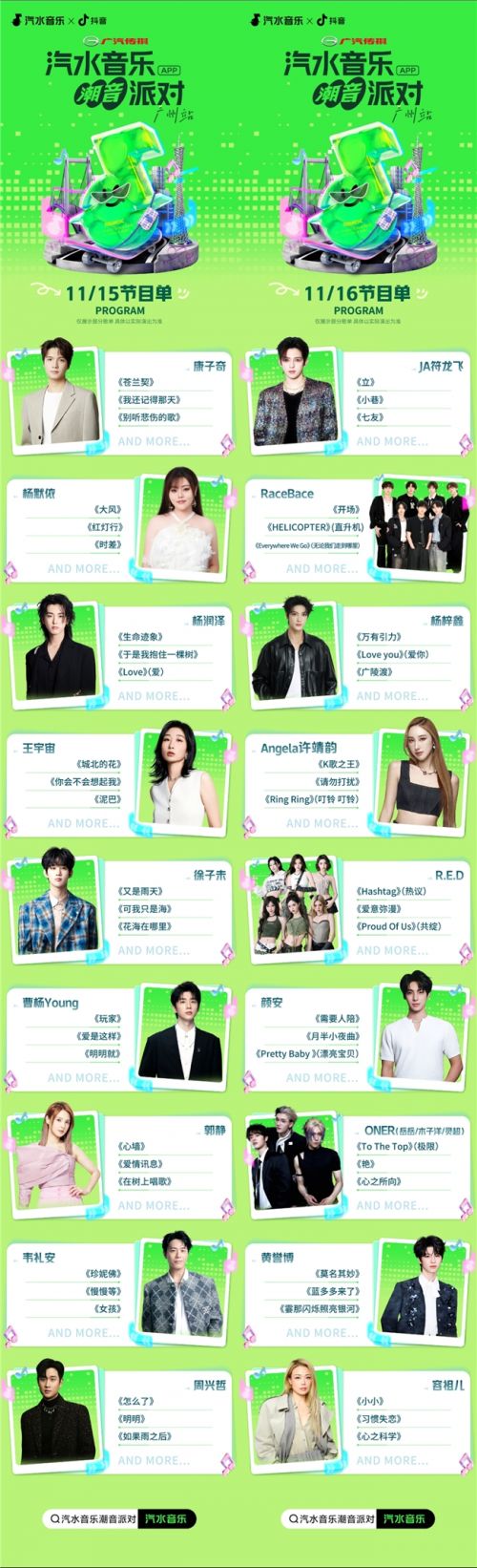 11月16日高能唱跳掀起狂潮,每个节拍都精准击中心跳。JA符龙飞、RaceBace无畏开场,R.E.D、ONER(岳岳/木子洋/灵超)以个性舞台打破常规;杨梓鑫、许靖韵、颜安、黄誉博能量接力,容祖儿的粤语金曲更将点燃集体记忆,期待和观众一起将现场气氛推向巅峰!
