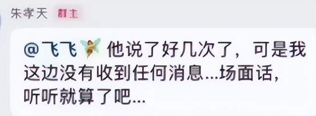 不过对此,朱孝天是并不接受的,他从12月23日晚就开始呈现出内心破防的状态,他在回应粉丝时表示,这些都是场面话,他本人并没有收到任何信息。