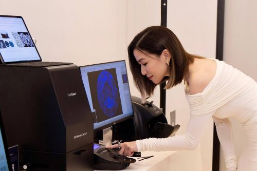演员佘诗曼体验戴比尔斯集团专业钻石甄别仪器
