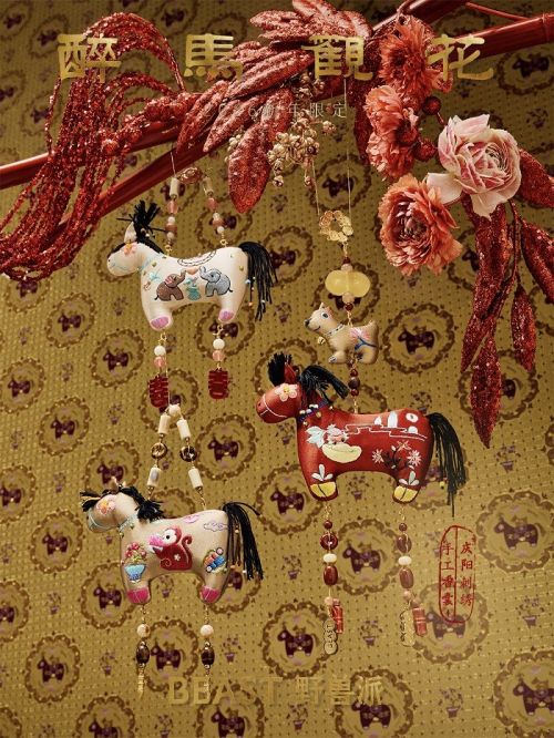 井柏然亲手体验布艺贴花工艺,使用红色锦缎点缀花饰,将传统吉祥图案化作灵动的新春花艺;宋雨琦则为小马玩偶精心点缀彩珠,珠串轻响,仿佛驮福而行,为赠礼增添一份灵动意趣;龚俊在非遗剪纸老师的指导下执剪运纸,裁出一匹迎春小马,并由此延展出「走马灯」的创作灵感——纸马连缀成环,灯影流转不息,寓意时光向前、好运相随,将“马”的蓬勃生机与“灯”的温暖光影巧妙相融,成为此次限定系列中格外动人的亮点。
