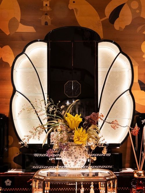 「海上阁」一名,是来自野兽派首席创意官Lingjie对该空间理想属性的解读:“‘海上’并非地理指向,而是上海中西交汇、古今并置的文化想象;‘阁’,则是于喧嚣中抽身的一处凝视之境。「海上阁」故此呈现审美的‘混血’,不复刻旧章,而以实验重组——拆解 1920 年代 Art Deco 的结构秩序,再融入野兽派的当代情绪。既有老上海见多识广的定力,也保留此刻不肯循规的锋芒。” 也正因此,「海上阁」并非装饰性的题头,而是对这座空间气质的准确定调。