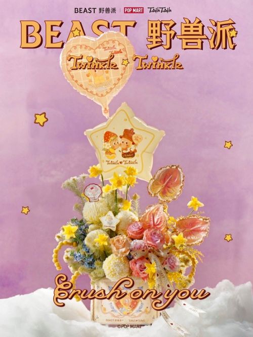 2026年情人节之际,BEAST野兽派携手泡泡玛特及人气IP星星人,重磅推出「怦然星动 Crush On You」花艺联名系列