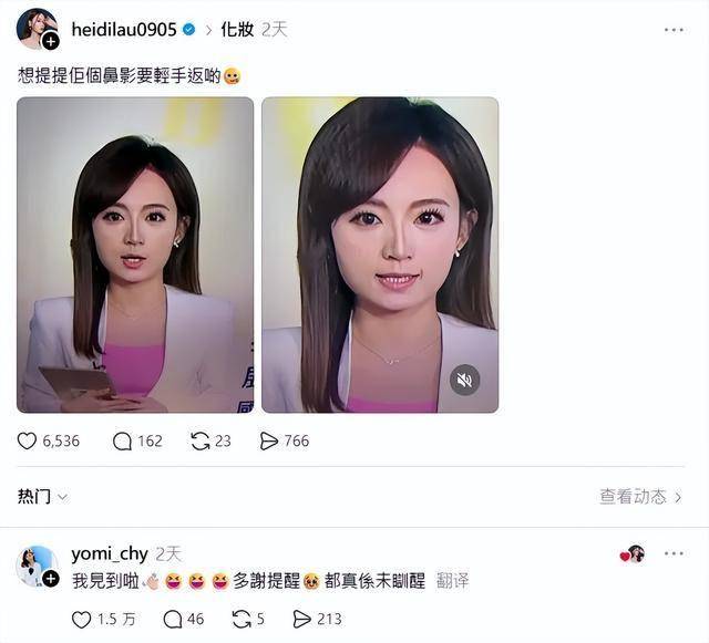 不过,近日网红模特儿刘海琦(Heidi)在社交平台上晒出Yomi播报新闻的截图,指出其妆容过浓,随即引发众多网民热议,还有人质疑她做医美……随后周可茵大方回应,获得一致好评。