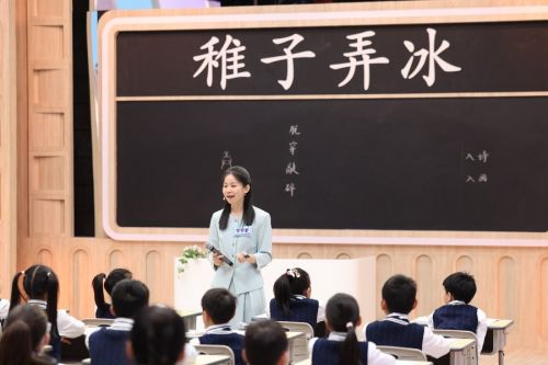 岑宇君老师和学生们一起穿越南宋,执教五年级下册《稚子弄冰》,以具身学习为理念,从甲骨文 “弄” 字的本义解读开篇,让学生动手体验“弄冰”的场景,在画面想象、节奏朗读中感受冰块破碎的意外之趣,解锁杨万里 “有声有色、有情有趣” 的诗风密码,让宋代古诗的童真童趣跃然于课堂之上。